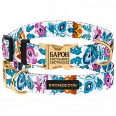 41/1415Б/Т Нашийник д/собак з нашивк Folk квіти з золот фастексом М (Об. шиї 30-40см Шир-20см) білий