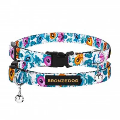 49/1415/Т Нашийник д/котів Folk застібка пласт. з дзвіноч. квіти XS (Об. шиї-18-28см Шир-10мм) білий