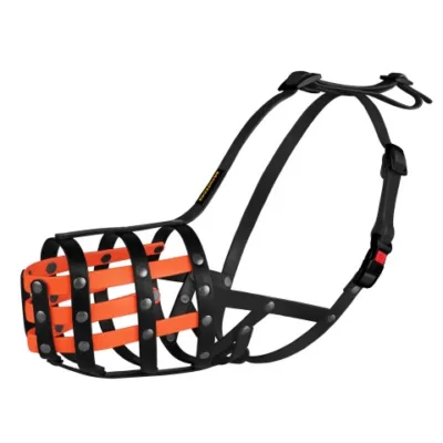 4904/Т Намордник сітка з біотану чорний з помаранчевим (доберман, велика вівчарка), А-32см,С-14см