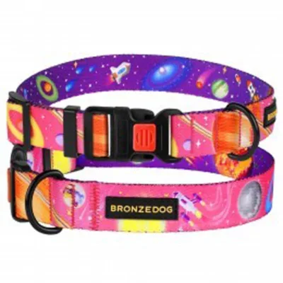 50/1217Б/Т Нашийник д/собак “Urban” Космос, застіб.пласт S (Об.шиї 25-33см.Шир-16см) рожев
