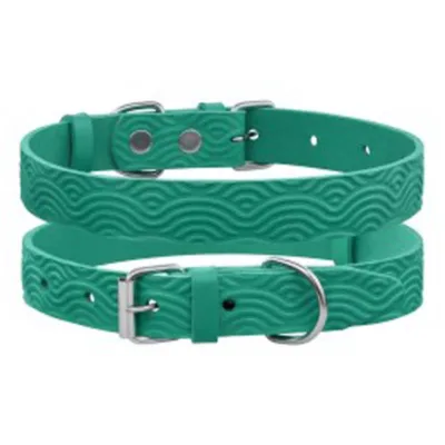 550113/Т Нашийник д/собак шкір. Classic один. з тисн. Хвиля (Розмір 2XS,ш 10мм, д 18-25) бірюз.
