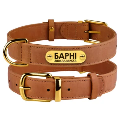 590240/Т Нашийник для собак шкіряний плоский BronzeDog Antiq (ш 20мм д 30-40 см) Tawny